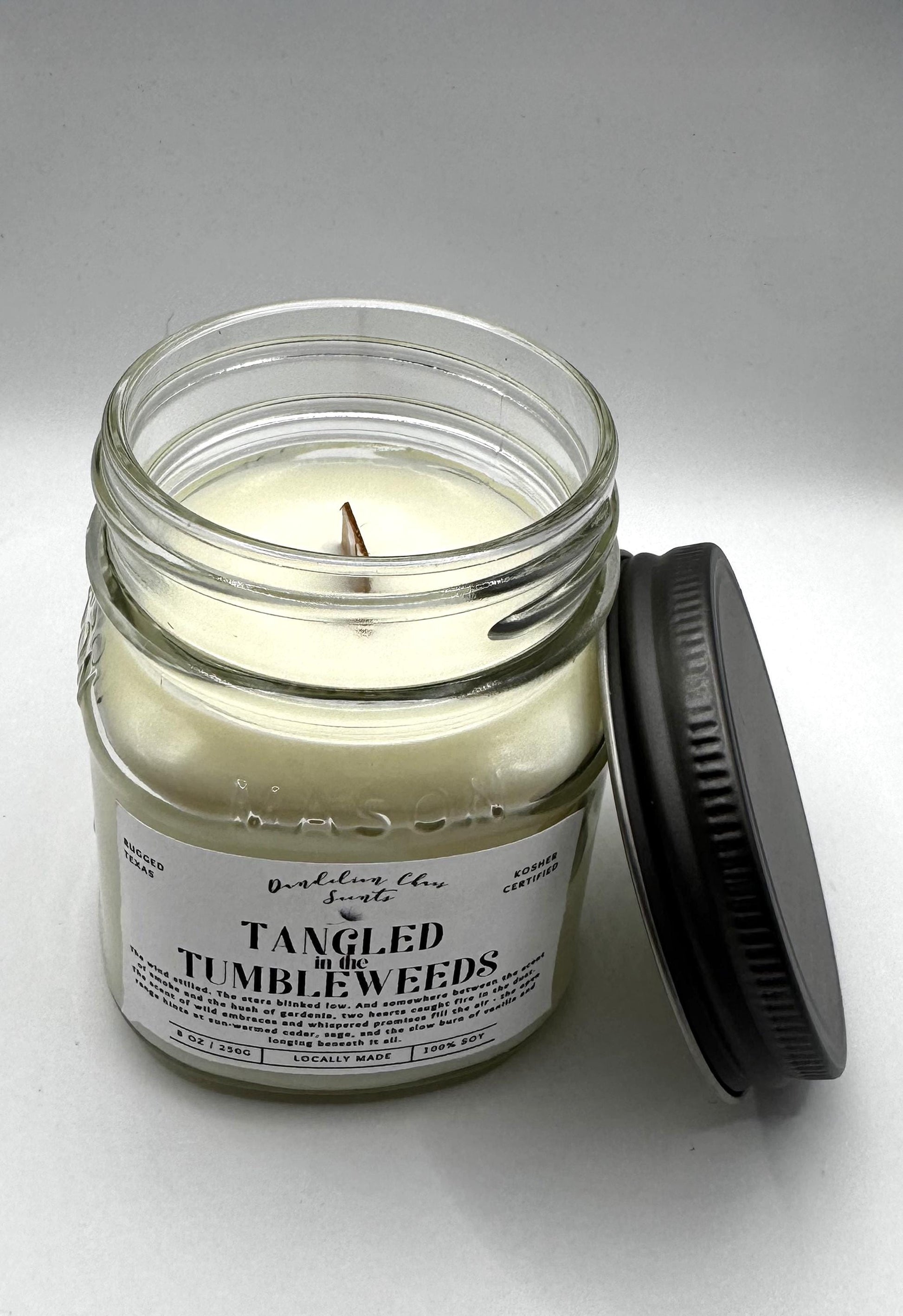 Tangled in the Tumbleweeds is where fresh sagebrush meets delicate gardenia, wrapped in vanilla cream and grounded with cedar wood. It’s the scent of a wildflower blooming where she pleases, sweet with a hint of danger and a whisper of wanderlust. A candle for the romantics who like their love stories a little dusty.